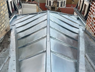 Création sur mesure de noues, rive et abergements de cheminées/fenêtre de toit pour garantir une étanchéité parfaite aux points les plus sensibles.