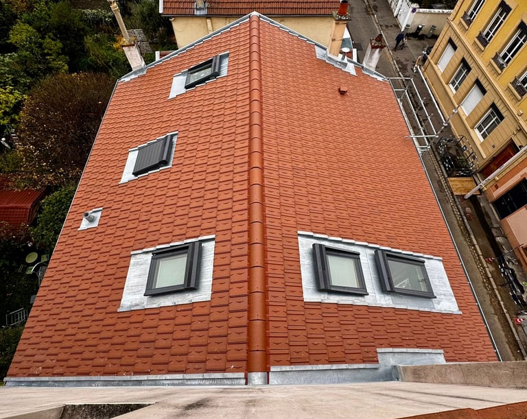 Notre équipe qualifiée est spécialisée dans l'installation, la rénovation et l'entretien de toitures, et nous vous garantissons des solutions sur mesure, adaptées à vos besoins spécifiques et aux caractéristiques de votre bâtiment. Nous veillons à respecter les normes les plus strictes en matière de qualité et de sécurité, afin de vous offrir une toiture durable, esthétique et performante.