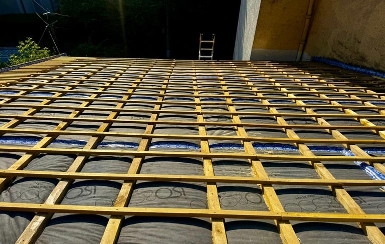 ESY Toiture est votre partenaire privilégié pour vos travaux d’isolation de toiture, un élément essentiel pour améliorer l'efficacité énergétique de votre maison et réduire les pertes thermiques. Une toiture mal isolée peut entraîner des déperditions de chaleur importantes, ce qui se traduit par des coûts de chauffage plus élevés et un confort thermique diminué. Pour remédier à cela, nous vous proposons des solutions d’isolation adaptées, visant à optimiser la performance énergétique de votre habitat.
